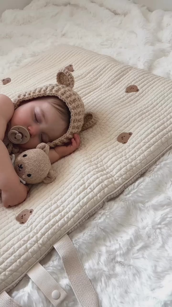 Malolotte's Quilted Nap Bed is the ultimate dreamy slumber spot —It's made of 100% pure cotton with a non-allergenic polyfill. It's the perfect snooze spot for daycare naps, picnics, travelling, tummy time and a lot more! Use it reversible and machine washable, it's suitable from age 3 months and beyond!